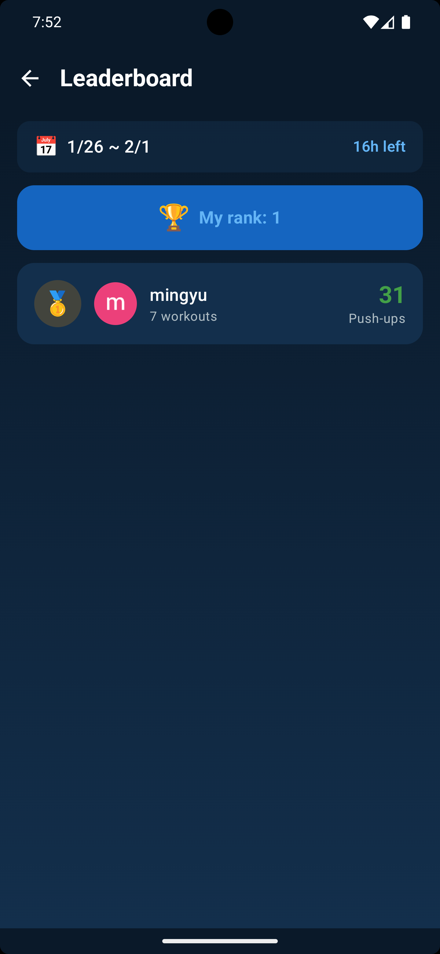 이번주는 아직 16시간이 남았는데 리더보드는 이미 다음 주로 넘어가 있다.